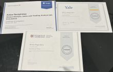 Гордість нашого коледжу — це амбітні та цілеспрямовані студенти, які не обмежуються аудиторними заняттями, а впевнено підкорюють глобальні освітні вершини. Яскравим прикладом такої жаги до знань є студентка групи ФБС-16 Аліна Погорілець, що завдяки своїй наполегливості, науковому керівництву Грищук Н.В та консультаціям керівника АТ КБ "ПриватБанк" Братіцела С.А. успішно опанувала серію курсів від провідних університетів світу та фінансових інституцій.