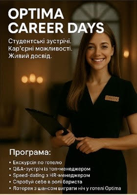17 вересня студенти групи ГРС-10 разом із викладачем Матвієнко Л.А. взяли участь у пізнавальній екскурсії до готелю «Optima», що відбулася в межах проєкту Optima Career Days.