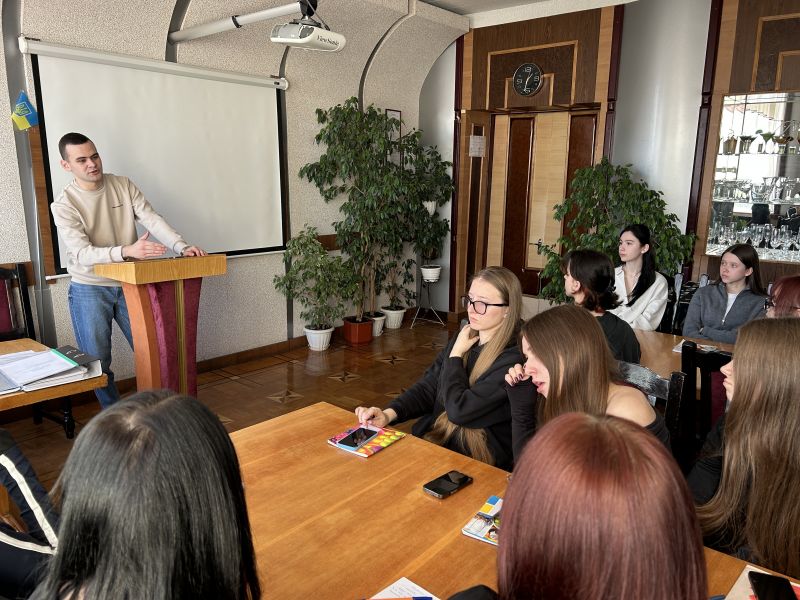 Під час зустрічі Данило поділився з студентами власним професійним досвідом, розповів про важливість комунікації у сфері обслуговування, тонкощі психологічного підходу до гостей, особливості поведінкового етикету та ефективні прийоми upselling - мистецтва ненав’язливої пропозиції додаткових послуг чи страв.