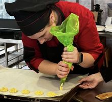 16 СЕЗОН 18.11.2025 р. для студентів ВСП «Вінницький торговельно-економічний фаховий коледж ДТЕУ», група ТРГ-156 спеціальність 181 Харчові технології, відбувся майстерклас «Приготування тістечок Шу» від випускника коледжу та учасника телепроєкту «Майстер-шеф» 16 сезон Олександр Зубко.