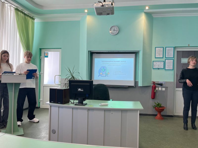 9.03.2026 р. в рамках «Тижня Консюмеризму» викладачем Солоненко Л. М. та студентами групи ПТ-96 Панасюком Арсеном та П'яст Дариною організовано та проведено захід «Споживча грамотність: як захистити себе у світі покупок».