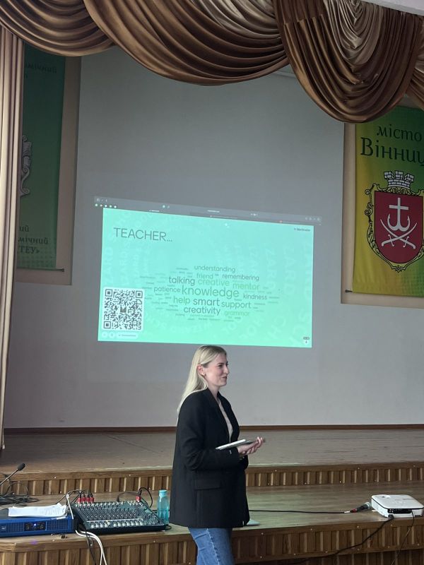 У ВСП “Вінницький торговельно-економічний фаховий коледж ДТЕУ” 23 жовтня 2025 року викладачі іноземної мови Телячук Н.В. та Бондарчук А.А. разом з волонтерами міжнародного комітету Ради студентського самоврядування Вінниччини Похилою Ольгою та Шкіндер Анною організували інтерактивну лекцію та Q&A session з представниками школи іноземних мов “Wizard School” на тему: “Education Without Borders”. На пізнавальну зустріч були запрошені студенти груп Ф-4, Ф-5, АП-1 спеціальності 035 “Філологія” та групи Ж-1 спеціальності С7 Журналістика.