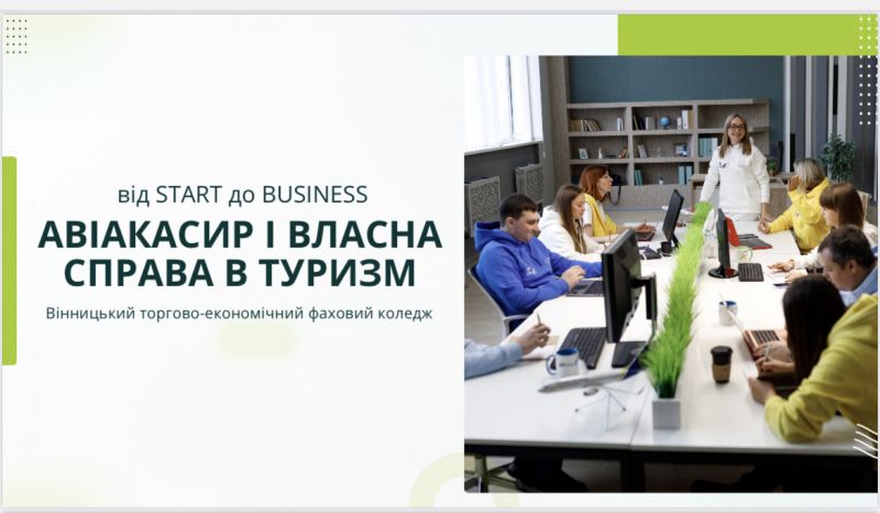 Для студентів 1–3 курсів спеціальності «Туризм і рекреація» ВСП «Вінницький торгово-економічний фаховий коледж» ДТЕІ проведено онлайн-лекцію на тему «Авіакасир і власна справа в туризмі: від старту до бізнесу». Спікеркою зустрічі стала Олена Кашперська – співвласниця, CEO та амбасадорка авіакосолідатора Airlife.