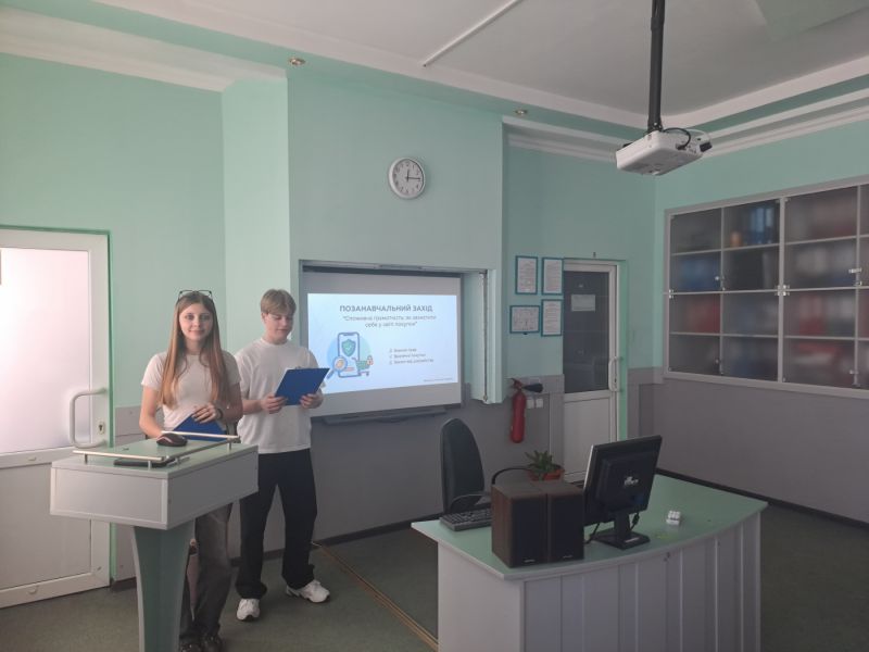 9.03.2026 р. в рамках «Тижня Консюмеризму» викладачем Солоненко Л. М. та студентами групи ПТ-96 Панасюком Арсеном та П'яст Дариною організовано та проведено захід «Споживча грамотність: як захистити себе у світі покупок».